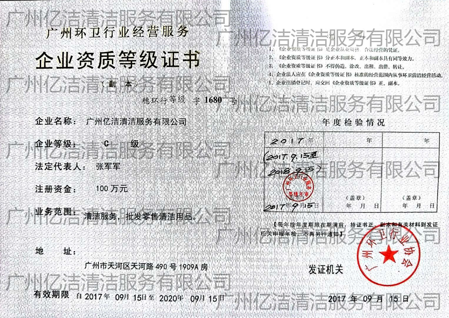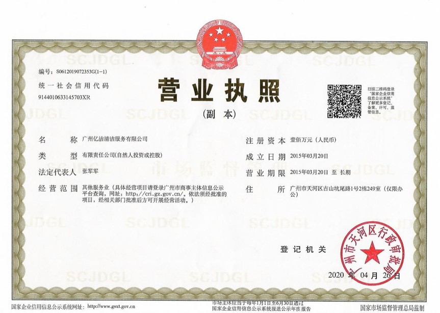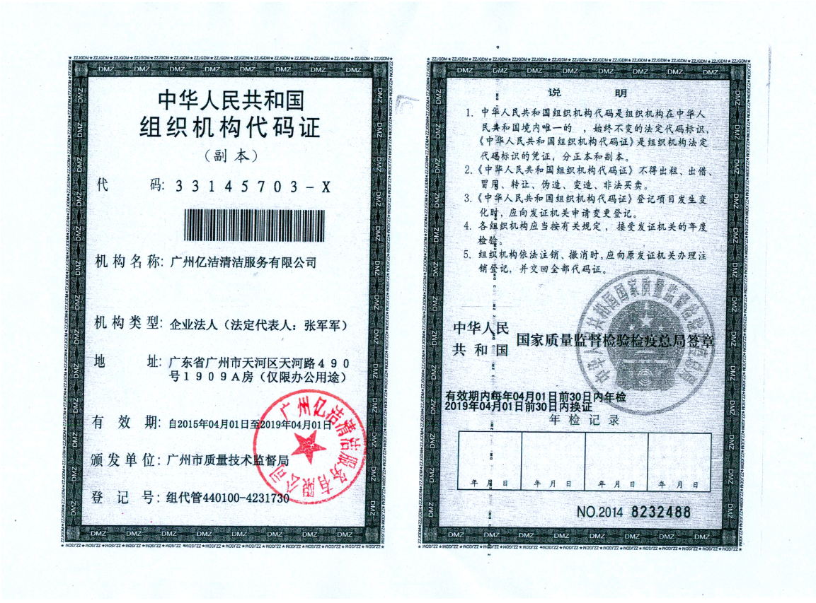 廣州億潔清潔服務(wù)有限公司是經(jīng)廣州市工商行政管理局批準(zhǔn)成立的(注冊(cè)資本:100萬(wàn)元人民幣)。具有獨(dú)立法人資質(zhì)。公司成立2015年,公司具備完善的管理體系和高素質(zhì)管理隊(duì)伍,擁有特種技術(shù)人員33名,保潔服務(wù)人員上萬(wàn)名,覆蓋廣州市,能及時(shí)調(diào)配并快速投入高效運(yùn)行。我們的每個(gè)員工都經(jīng)過(guò)公司的嚴(yán)格篩選,嚴(yán)格培訓(xùn),定期培訓(xùn)后持證上崗以保證服務(wù)品質(zhì),保障客戶(hù)的權(quán)利,利益,形象等不受損失。 廣州億潔清潔公司是一家設(shè)備齊全,技術(shù)強(qiáng)大的綜合型清潔服務(wù)公司,為客戶(hù)提供完善服務(wù)尊定了堅(jiān)定的基礎(chǔ)。 司于2010年全面推行了ISO9001質(zhì)量管理體系認(rèn)證和ISO14001國(guó)際環(huán)保體系認(rèn)證。先后獲得廣州高層建筑外墻清洗維修作業(yè)【安全資質(zhì)證書(shū)】、【廣州環(huán)衛(wèi)企業(yè)等級(jí)證書(shū)C級(jí)資質(zhì)】、廣州疾控中心頒發(fā)的【四害消殺服務(wù)資質(zhì)證】、【空氣治理A級(jí)資質(zhì)】、中國(guó)石材協(xié)會(huì)頒發(fā)的【石材資質(zhì)B級(jí)資質(zhì)】等。 廣州億潔清潔服務(wù)有限公司致力于打造專(zhuān)業(yè)、實(shí)惠、靠譜的保潔服務(wù)公司,把專(zhuān)業(yè)的事情交給專(zhuān)業(yè)的我們,您放心! 億潔清潔服務(wù)項(xiàng)目: 廣州保潔服務(wù):新建樓宇、別墅、酒店、醫(yī)院、辦公樓、賓館、企事業(yè)單位廠(chǎng)房竣工后開(kāi)荒及裝修后精細(xì)保潔.工程保潔服務(wù)。 廣州物業(yè)托管:為廣州市各大企事業(yè)單位、賓館、政府機(jī)關(guān)、小區(qū)物業(yè)、酒店及廠(chǎng)房提供專(zhuān)業(yè)化保潔、園林、設(shè)施維護(hù)等管理服務(wù)。 廣州高空作業(yè):高空玻璃幕...[詳情]